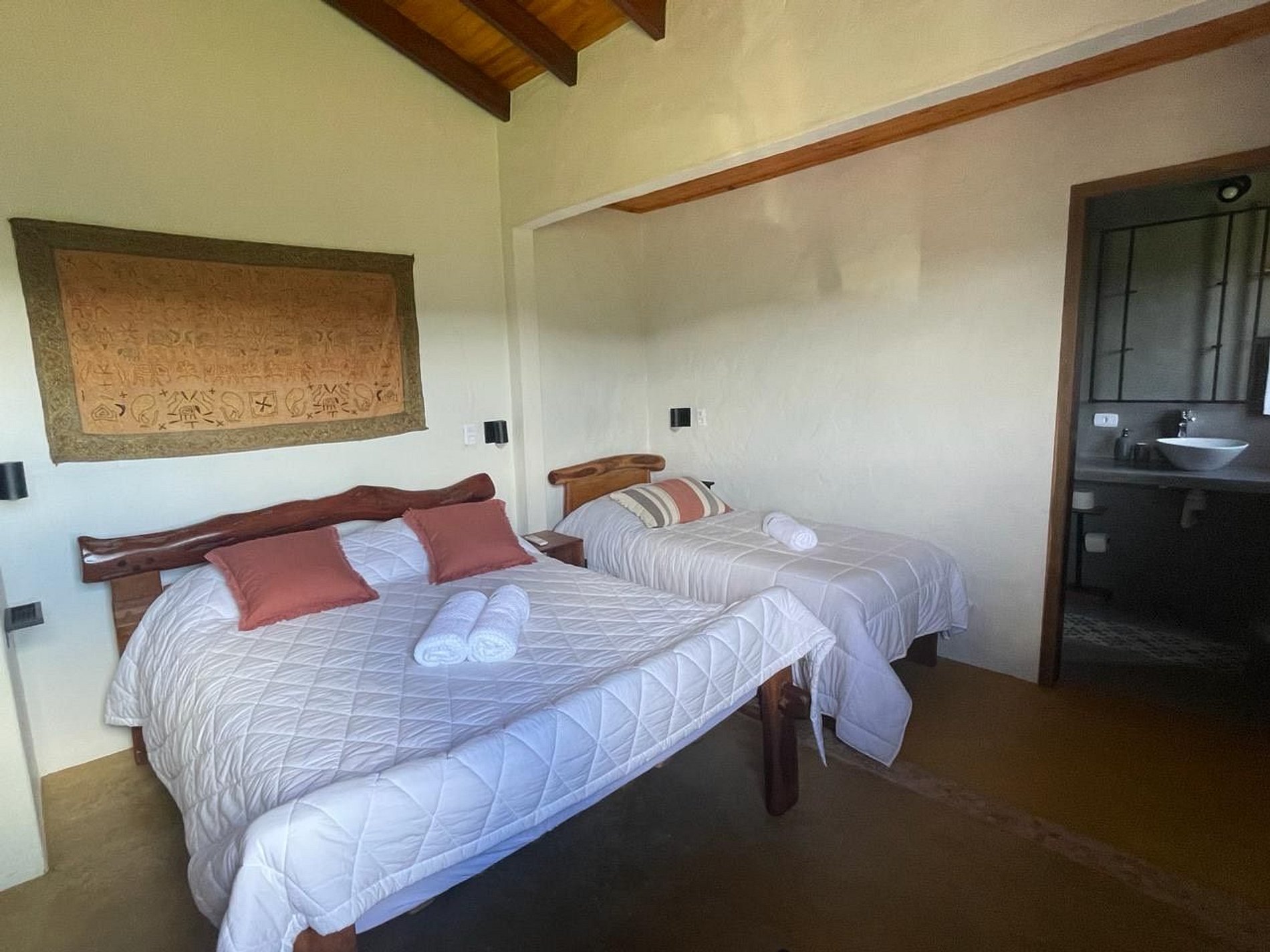 Casa ampla, com 2 suites + um outro banheiro completo, sala com sofá cama, cozinha completa e equipada, varanda e um deck de madeira ideal para observar a natureza. Acomoda confortavelmente até 6 pessoas. A casa faz parte da FAZENDA Vila Xuá, localizada a exatos 11,5 km de Alto Paraíso e a 22 km de São Jorge.