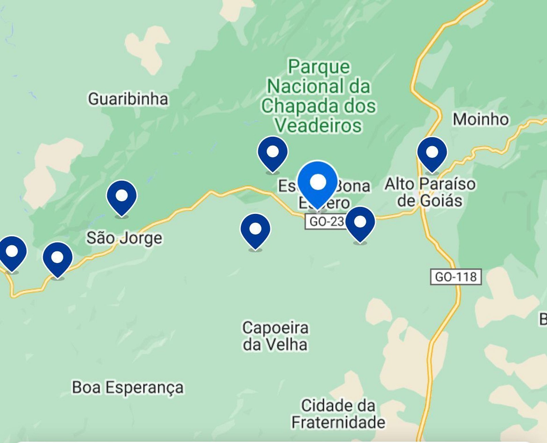 A FAZENDA VILA XUÁ fica na beira da estrada GO -239 que une as cidades de Alto Paraíso e São Jorge. Localização estratégica, bem perto da Fazenda São Bento que alberga três das mais famosas cachoeiras da região (São Bento, Almecegas I e Almecegas II), da Cachoeira Bona Espero e do Morro da Baleia. A ciclovia passa pela frente da fazenda e permite uma interação única com o cerrado.